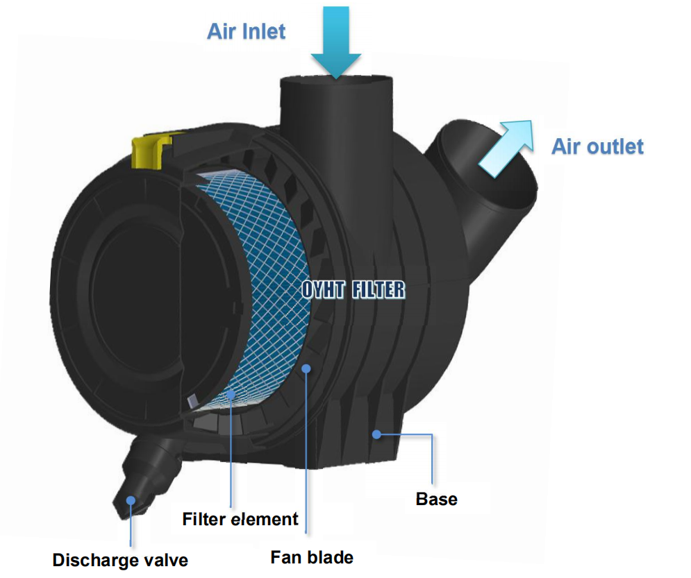 1. Двухступенчатая структура воздушной фильтрации с направляющими лопатками внутри, обеспечивающая эффективность отделения на выходе более 99,9%. 2. Низкое гидравлическое сопротивление системы для достижения максимальной производительности двигателя, а также увеличенный срок службы фильтра, позволяющий продлить интервалы технического обслуживания. 3. Простое техническое обслуживание; замена фильтрующего элемента не требует использования инструментов. 4. Корпус изготовлен из ударопрочного полипропилена и пригоден для непрерывного использования в диапазоне температур от -40°C до +80°C или кратковременно — до +100°C.